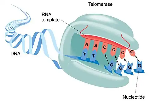 Telomerase is a ribonucleoprotein (a ribonucleic acid-protein complex). It is an enzyme that maintains the telomeres (ends) of chromosomes during DNA replication. It has been found to be useful in the therapeutical, pharmaceutical, and diagnostic reagents.