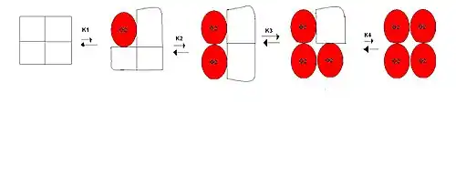 The concerted model (symmetry model or MWC model): enzyme subunits are connected in such a way that a conformational change in one subunit is necessarily conferred to all other subunits. Thus all subunits must exist in the same conformation. Example: In hemoglobin, the tetramer changes conformation together (R state) after four oxygen molecules bind to all four monomers. The transition from the T state to the R state occurs in one step.