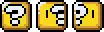?-blocks always contain items. It can be one or more coins, but also a P-cloud, a cape feather, a Fire Flower, a Super Mushroom, a 1-up, or a Yoshi egg. To get as much coins out of a ?-block, stand under it and start jumping very fast. When the block has no more items in it, it will turn into a solid block. You can't break ?-blocks by spin-jumping on them. They sometimes appear if you press a P-switch, creating new paths for you. At the start of some courses is a Starman, if you grab it and then run you'll sometimes find another ?-block. Jumping against it while you're still invincible will sometimes pop a new Starman out of it. Grab it and run further, until you see another ?-block, repeating the trick, and so on. ?-blocks first appeared in Super Mario Bros.