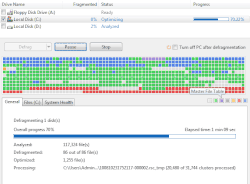 Disk defragmenter -This program optimizes the hard drive by searching for files stored on the hard drive in fragments and assemble them to be stored in contiguous locations. This will make the hard drive run more efficiently since files are more organized and can be more efficiently located.