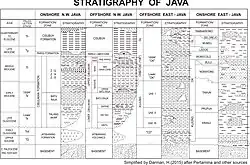 A stratigraphically oriented field survey on South Central Java, the results of two wells, drilled offshore in deep water, and good quality seismic data allowed a tentative reconstruction of the sedimentary history of the area. The main tool for the stratigraphic correlations was the well-established zonation of planktonic foraminifera. The ages of the shallow marine sections, which in general do not contain planktonics, was based on the less accurate larger foram zonation.