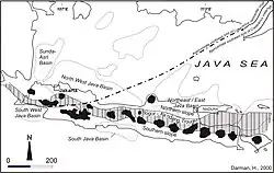 The structural history of the East Java can not be separated from the structural history of the western part of the island and the tectonics of the SE Asia region. This area is located on the southeastern edge of the Sundaland craton where basement is Cretaceous to basal Tertiary melange. This old continental margin has a northeast to southwest structural trend that is clearly seen on offshore north Java seismic data.