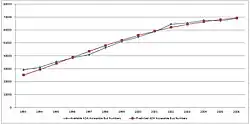 In fact this mode owes its birth to a growing market of handicapped users that pre-dates the Americans with Disabilities Act of 1991. This indicates that municipal transit agencies where recognizing the need to provide transit services to disabled citizens long before the federal mandate made by the ADA and FTA. As shown in the data in figure 1 there is a relatively steady rate of growth (the growth phase) from 1993 to 2001, although it is likely that the growth phase began prior to the 1991 ADA regulations. At the end of the curve you can see the mode begins to enter its mature phase around 2002 at which point the number of accessible buses only increases by about two thousand a year.