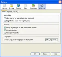 This pane offers some advanced settings. There is a third tab offered under "Advanced", "Security". However, most users should not need to change any preferences on this tab.