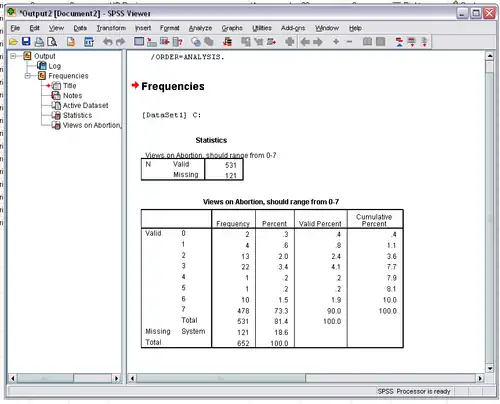 Click OK and your Output Window will show a frequency distribution table for your new variable: