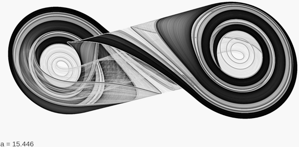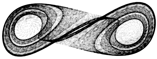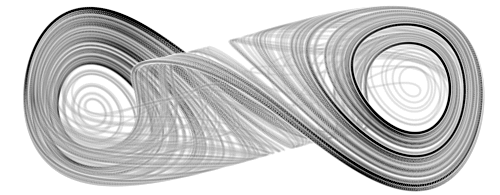 It is a strange attractor because it is chaotic. A moving point circulates on the 8 in a way that seems disordered: a few turns on the left part of the 8 then a few turns on the right part and so on, but the number of turns on each part is unpredictable.