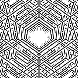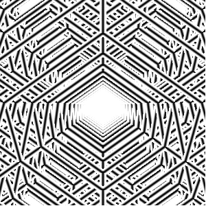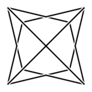 Each line represents a bond between two ions in a crystal of NaCl (sodium chloride = ordinary salt). Blue and green distinguish the two kinds of ions. It is a centered cubic crystal. Each Na+ ion is surrounded by 8 close neighbors Cl-. Likewise, each Cl- ion is surrounded by 8 close neighbors Na+. Two nearby ions always have opposite charges, because opposite charges attract each other while charges of the same sign repel each other.