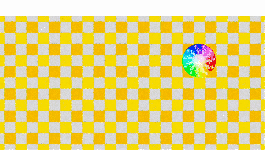 Hard disks subject to gravity bounce on each other. The large yellow disk experiences greater pressure at its base than at its top. This is why it is carried by the fluid like a hot air balloon.