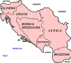 Yugoslavia — a union of present-day Serbia, Croatia, Slovenia, Bosnia and Herzegovina, Macedonia, and Montenegro that existed from 1918 until the 1990s.