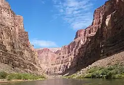 Arizona is also home to the Grand Canyon which is considered to be one of the Seven Natural Wonders of the World. The Grand Canyon is a colorful, steep-sided gorge, carved by the Colorado River, in northern Arizona. The Canyon was created by the Colorado River cutting a channel over millions of years, and is about 277 miles (446 km) long, ranges in width from 4 to 18 miles (6 to 29 kilometers) and has a depth of more than 1 mile (1.6 km).