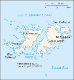 Welcome to the Falkland Islands! The Falklands (as they are known locally) are a group of islands 300+ miles (500 km) of the coast of South America. The Falklands are a self-governing overseas territory of the United Kingdom of Great Britain and Northern Ireland; they are claimed as part of Argentina by the Argentine constitution. The Falkland Islands Government control their own affairs, such as schools, hospitals and taxes. In the islands is a passage called the Falkland Sound which the islands are named after, which goes through the middle of the islands.