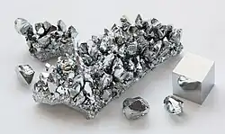 In 1794, Johan Gadolin found an ore in the Ytterby mine in Sweden, from which yttrium was extracted. In 1824, Friedrich Wöhler extracted the element yttrium from it. Yttrium is one of the rare earths (which are not that rare). It is used for magnets, fuel cells and spark plugs. Yttrium powder can build up in the lungs and damage them. Pieces of metal do not burn, but powder burns easily.