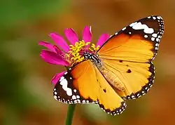 The monarch is closely related to several similar-looking butterfly species whose ranges abut or overlap with its own. It also has a Müllerian mimic, the viceroy, whose similar toxicity and coloration discourages predators from hunting either species.