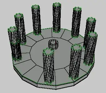 After executing the Put-On, you should see all your columns duplicated around the central cylinder.