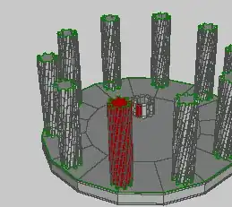 Let's say we want to duplicate the twisted column on the right in a circle around the point indicated by the red spot.