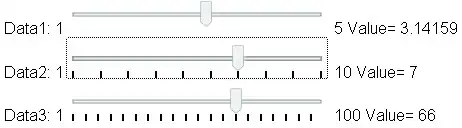 The first control just selects decimals from 1 to 5. The second uses the step to return only integers. The last has a range of 1 to 100 in increments of 5. Note that the value is 66 and you cannot set a value from 62 to 65.