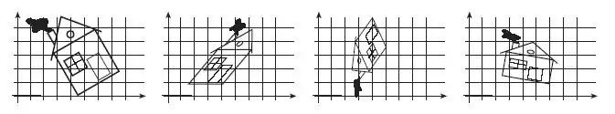 На рисунке 1 показаны различные движения плоскости с нарисованным на ней домиком. А на рисунке 2 показаны различные аффинные преобразования этой плоскости.
