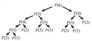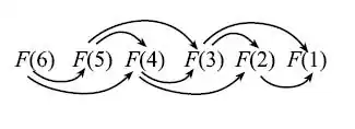 При вычислении значения будут вызваны процедуры вычисления и . В свою очередь, для вычисления последних потребуется вычисление двух пар , и , . Можно нарисовать «дерево рекурсивных вызовов».