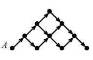 Найдите число различных путей из точки в точку по стрелочкам. Напишите программу, которая вычисляет число этих путей для таких треугольных конфигураций (графов) со стороной .