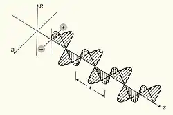 Параметр , представляет собой волновое число, где есть длина волны. Поскольку колебания интенсивности происходят для различных составляющих волны во взаимно перпендикулярных плоскостях, то такая монохроматическая волна является плоско поляризованной и поперечной, так как векторы и перпендикулярны направлению распространения волны и (за исключением частного случая явления дихроизма)образуют правую тройку, описываемую векторным произведением: = x ,где есть вектор скорости волны в данной среде, совпадающий с направлением ее распространения .