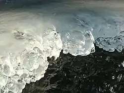 Жидкости имеют определенный объем, но не имеют определенной формы. Вместо этого они принимают форму своего контейнера в той степени, в которой они действительно «содержатся» чем-то, например, стаканом или сложенной чашей рукой или даже лужей. Если они не «содержатся» формальным или неформальным сосудом, форма определяется другими внутренними (например, межмолекулярными) и внешними (например, гравитацией, ветром, инерцией) силами. Молекулы расположены близко, но не так близко, как твердое тело. Межмолекулярные связи слабы, поэтому молекулы могут свободно проскальзывать мимо друг друга, плавно теку. Свойством жидкостей является «вязкость», мера «густоты» при течении. Вода не такая вязкая, как, например, патока.