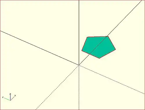 Так же, как и linear_extrude, экструзия всегда выполняется на проекции двумерного многоугольника на плоскость XY. Преобразования, такие как поворот, перевод и т. д., Применяемые к двумерному полигону перед экструзией, изменяют проекцию двумерного полигона на плоскость XY и, следовательно, также изменяют вид итогового двумерного предмета.