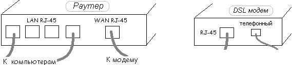 Через RJ-45 модем может быть подключен или прямо к компьютеру, или к маршрутизатору (ро́утеру) — другой коробочке, позволяющей вам подключить к Интернету сразу несколько компьютеров.