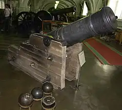 - ↑ Крапошин П.В. Гладкоствольная крепостная пушка из собрания музея «Коломенское»//Военное прошлое государства Российского: утраченное и сохраненное, Материалы Всероссийской научно-практической конференции, посвященной 250-летию Достопамятного зала, 13–17 сентября 2006 года - с.52-54