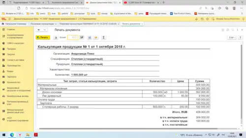 - «Подробная калькуляция», которая служит для детального анализа стоимость продукции и разворачивается до первичных затрат, в разрезе статей калькуляций и типов затрат.