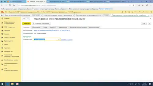 На закладке «Ресурсные спецификации» или «Заказы на производство» указывается: