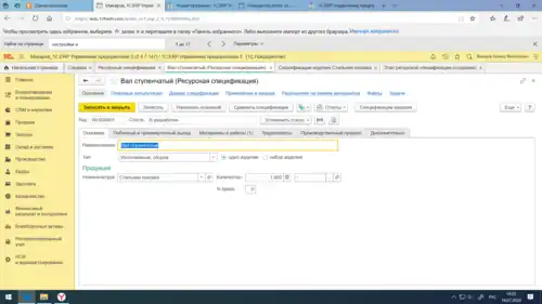- «Тип» производственного процесса: «Изготовление, сборка» (спецификация описывает процесс производства продукции или выполнения работ), или «Ремонт» (описание процесса ремонта), или «Разборка, утилизация» (описывает разборку исходной продукции на компоненты).