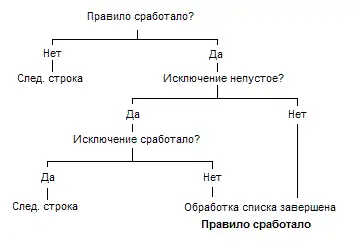 Каждое исключение работает только с тем правилом, в строке которого оно находится.