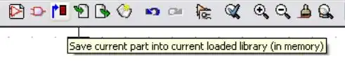 - Щелкните по “Save current part into current loaded library (in memory) – сохранить текущую часть в текущей загруженной библиотеке (в памяти)” на верхней инструментальной панели.