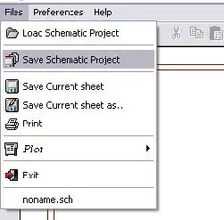 - Вначале следует сохранить проект схемы: “Files” -> “Save Schematic Project”.