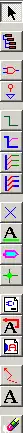 Эта панель инструментов дает доступ к командам: - размещения компонентов, проводников и шин, соединителей, меток, текста... - навигации по иерархии в многолистовом проекте. - создания дополнительных листов схемы и межлистовых соединителей. - удаления компонентов. |
