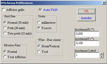 Курсор перемещается по сетке, отображение которой может быть как включено, так и выключено (при работе с Library Editor и Library Browser сетка всегда включена). Вы можете изменить шаг сетки через выпадающее меню Preferences/Options. По умолчанию, шаг сетки устанавливается равным 50 mil (0.050"), или 1,27 миллиметра (Normal). Доступны ещё два значения шага сетки — 20 mil (Small) и 10 mil (Very Small), но пользоваться ими рекомендуется лишь в особенных случаях, например, для создания или выполнения действий над компонентами, содержащими большое количество выводов (несколько сотен).