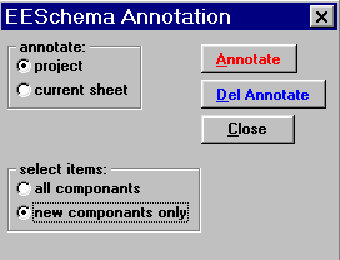 переаннотировать текущий лист (эта опция используется только в специальных случаях, например для подсчета количества резисторов в текущем листе).