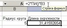 Пример формулы для вычисления длины окружности, содержащую функцию ПИ():