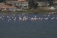 The Bassin de Thau provides a habitat for a variety of wild animals, notably birds such as herons and pink flamingos[4] and a rich marine fauna, including bivalves (oysters and mussels), jellyfish, fish, and algae. Periodically in the spring and summer, the Thau Lagoon has algae blooms of Alexandrium catenella which sometimes reach such high levels that it results in contamination of the lagoon's bivalves with algae toxins.[2]