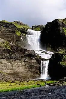 Ófærufoss (Icelandic pronunciation: [ˈouːˌfaiːrʏˌfɔsː] ⓘ) is a waterfall situated in the Eldgjá chasm in the western part of Vatnajökull National Park, Iceland. Until the early 1990s a natural bridge spanned the falls, but it collapsed from natural causes.[1]