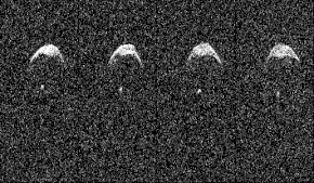 Animation of Arecibo radar images showing 2003 YT1's rotation and its satellite's orbital motion on 3 May 2004