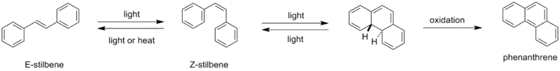 Upon UV irradiation it converts to cis-stilbene, a classic example of a photochemical reaction involving trans-cis isomerization, and can undergo further reaction to form phenanthrene.[24]