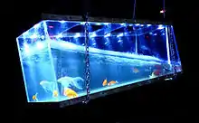 (Le) Poisson Rouge (often referred to as LPR) is a music venue and multimedia art cabaret in New York City founded in 2008 by Justin Kantor and David Handler on the former site of the Village Gate[2] at 158 Bleecker Street. The performance space was designed and engineered by John Storyk/WSDG. It has become known for its focus on artistry, bringing contemporary classical music into the club setting, and offering a variety of set ups so that a seated classical performance can be followed by a standing set by a rock band or a DJ.[3] Responding to a performance of Olivier Messiaen's Quartet for the End of Time featuring pianist Bruce Brubaker at LPR, The Wall Street Journal reported: "The crowd – many of whom wouldn't even have known who Messiaen was – sat in rapt silence, and roared their approval at the end."[4][5]