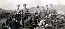 Signals troops of 13th Canadian Mounted Rifles with soldiers of the PPCLI at Camp Sarcee near Calgary AB, 1915