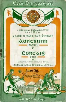 The 1943 All-Ireland Senior Hurling Championship Final was the 56th All-Ireland Final and the culmination of the 1943 All-Ireland Senior Hurling Championship, an inter-county hurling tournament for the top teams in Ireland. The match was held at Croke Park, Dublin, on 5 September 1943, between Cork and Antrim. The Ulster champions lost to their Munster opponents on a score line of 5-16 to 0-4.