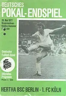 The 1977 DFB-Pokal Final decided the winner of the 1976–77 DFB-Pokal, the 34th season of Germany's knockout football cup competition. The original final was played on 28 May 1977 at the Niedersachsenstadion in Hanover.[2] The match between Hertha BSC and 1. FC Köln finished 1–1 after extra time, requiring a replay two days later. On 30 May 1977, once again at the Niedersachsenstadion in Hanover, 1. FC Köln won the replay 1–0 to claim their 2nd cup title.
