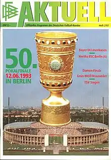 The 1993 DFB-Pokal Final decided the winner of the 1992–93 DFB-Pokal, the 50th season of Germany's premier knockout football cup competition. It was played on 12 June 1993 at the Olympiastadion in Berlin.[2] Hertha BSC's second team, playing in the third division, made it to the final against Bayer Leverkusen, making it the first and only time a reserve side has made it to the final, as second teams have since been disallowed from entering the competition. Leverkusen won the match 1–0 to claim their first cup title.