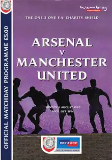 The 1999 Football Association Charity Shield (also known as The One 2 One FA Charity Shield for sponsorship reasons) was the 77th FA Charity Shield, an annual English football match played between the winners of the previous season's Premier League and FA Cup competitions. The teams involved were Manchester United, who had won both the Premier League and FA Cup as part of the Treble the previous season, and Arsenal, who finished runners-up in the league. Watched by a crowd of 70,185 at Wembley Stadium, Arsenal won the match 21.