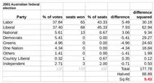 In fact, voter concern with terrorism in the aftermath of the September 11 attacks in the United States was noted, with the rise in the combined primary votes of the major parties from 79.61% at the previous election in 1998, to 81.17% at this election. There would be further increases in the combined major party primary vote in 2004 and 2007.