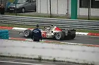 The 2006 Hungarian Grand Prix (officially the Formula 1 Magyar Nagydíj 2006)[5] was a Formula One motor race held on 6 August 2006 at the Hungaroring, Mogyoród, Pest, Hungary. It was the 13th race of the 2006 Formula One season. Jenson Button won the race driving a Honda, the first victory of his career, the first race win for a British driver since David Coulthard won the Australian Grand Prix three years previously, and the first by an Englishman since Johnny Herbert won the 1999 European Grand Prix nearly seven years previously, in similarly changeable weather circumstances. Pedro de la Rosa finished second for McLaren-Mercedes, the only podium finish of his career, and Nick Heidfeld finished third, giving BMW Sauber their first podium.